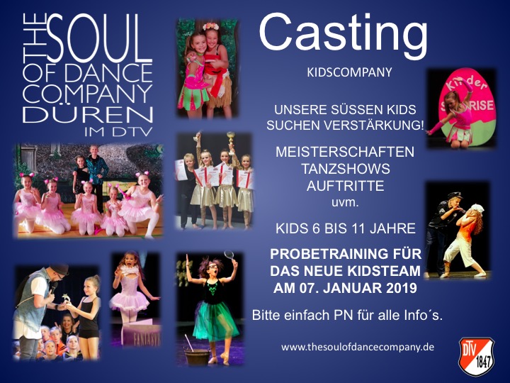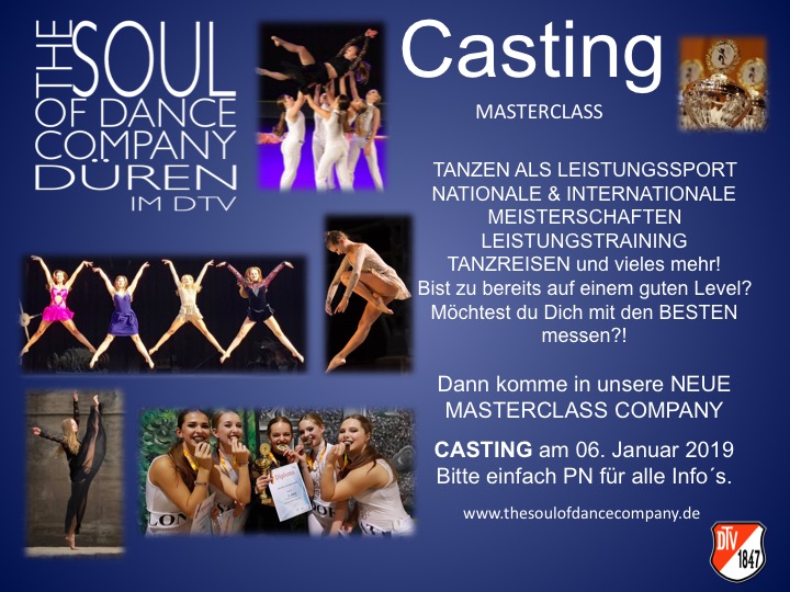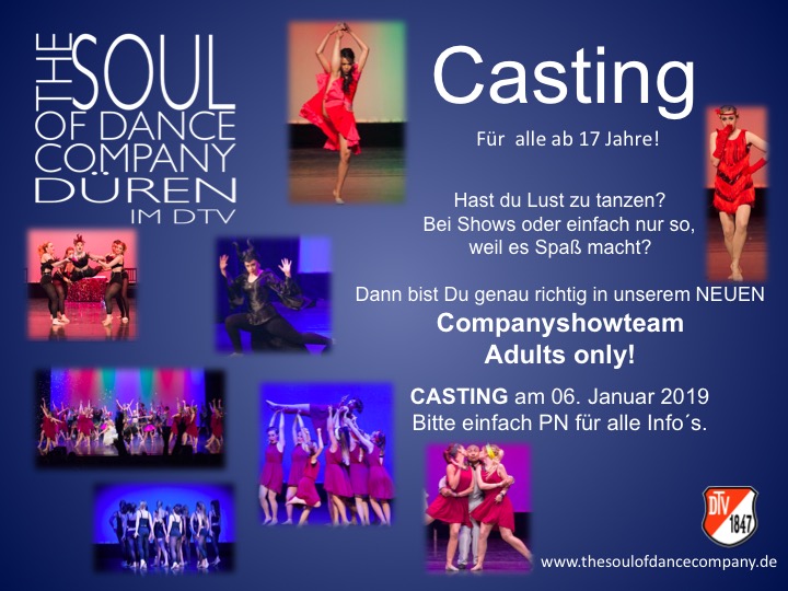 Infos zur Company unter www.thesoulofdancecompany.de oder einfach E-Mail an info@thesoulofdancecompany.de